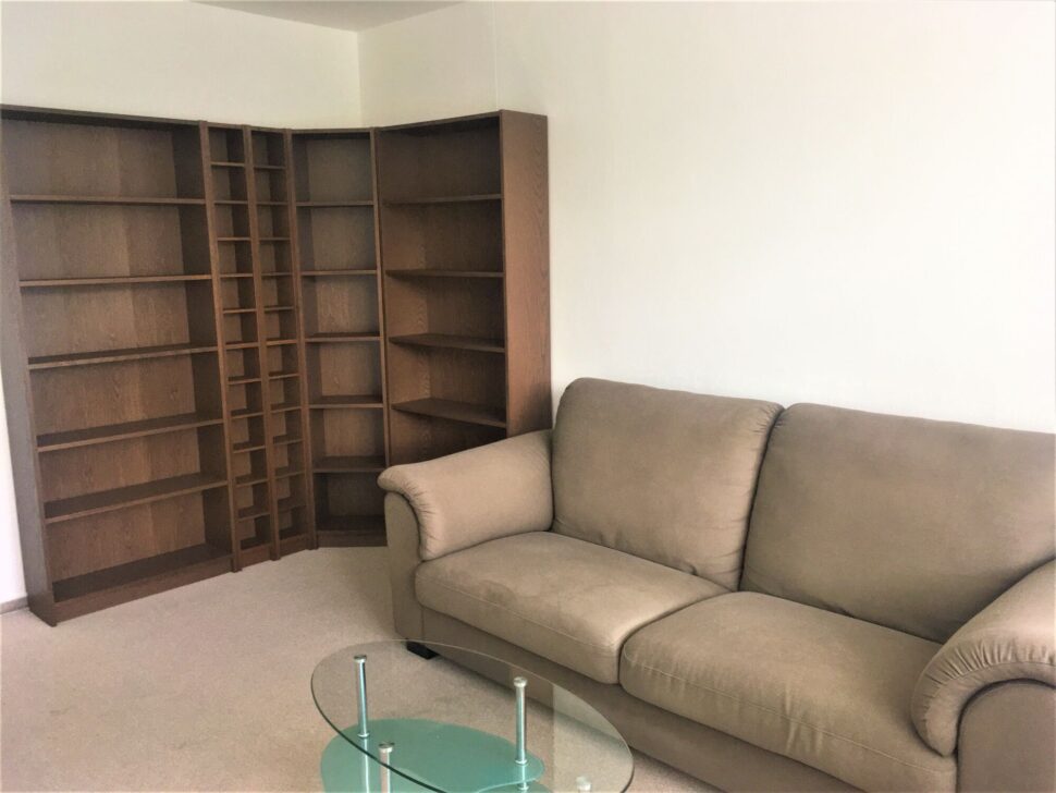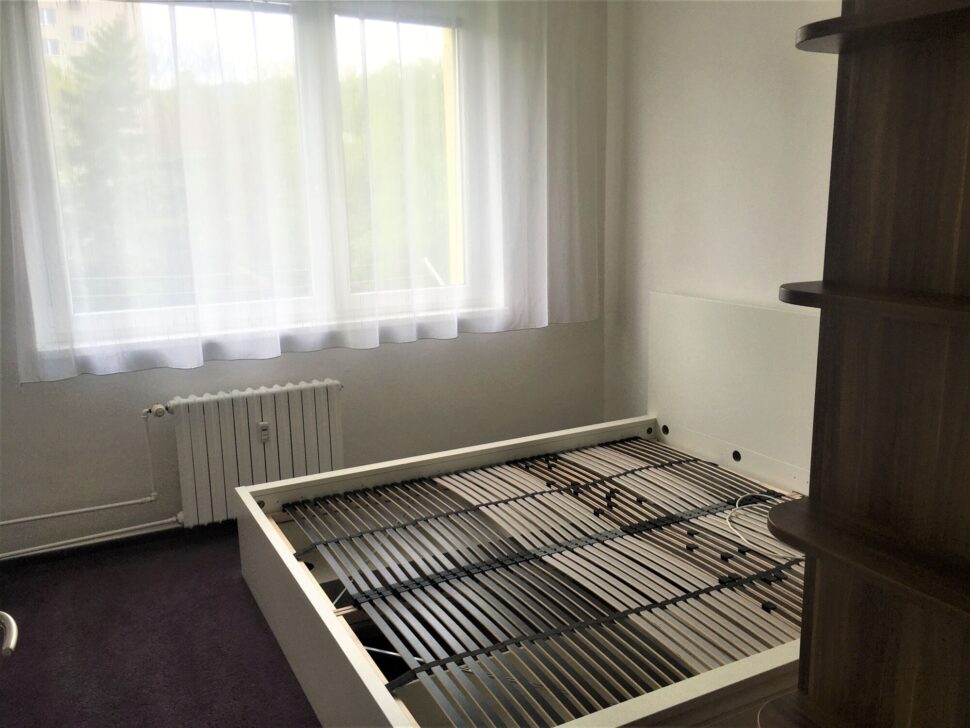 Byt je částečně zařízený (lednice, pračka, stůl se židlemi, sedačka, knihovna, postel a skříň – lze nechat dle domluvy), nově vymalovaný a uklizený. Pokoje jsou neprůchozí.