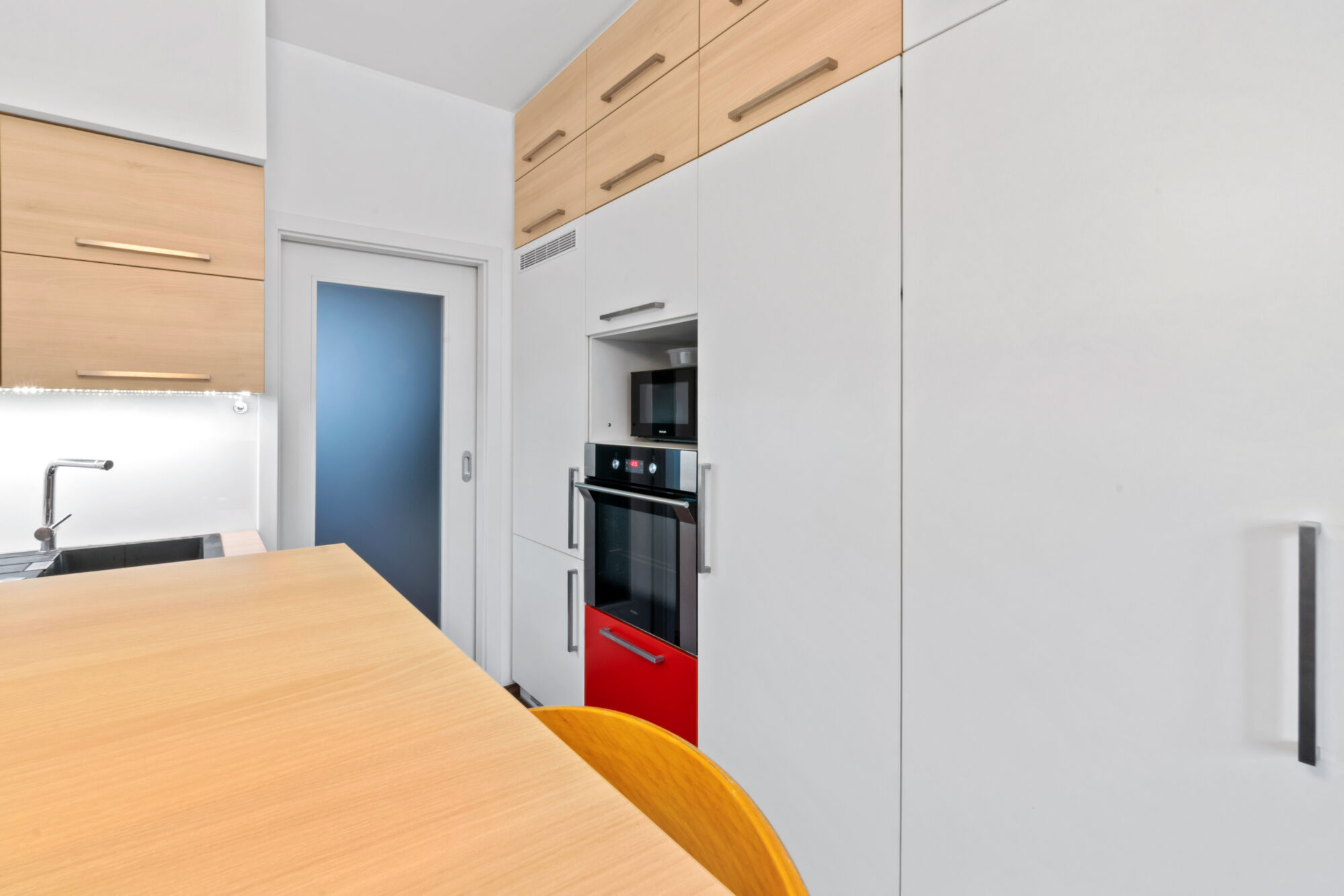 Byt je po celkové rekonstrukci a kompletně zařízený s dostatkem úložných prostor (varná deska, trouba, lednice s mrazničkou, myčka, mikrovlnná trouba, stůl se židlemi, sedací souprava, konferenční stolek, televize, police, šatní skříně, pračka, sušička), vymalovaný a profesionálně uklizený.
